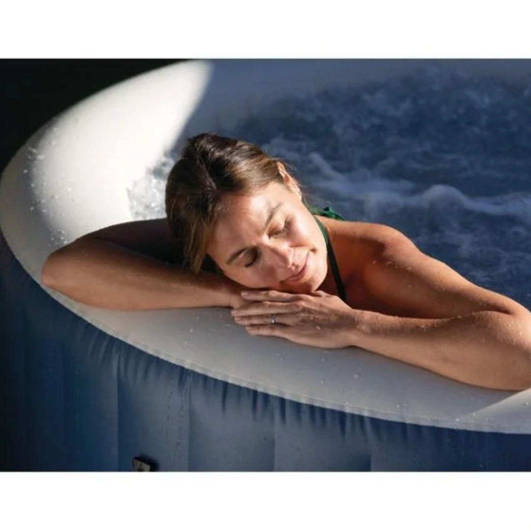 Uživajte u vrhunskom hidromasažnom efektu uz Pure Spa Plavi bazen, dizajniran za do četiri osobe. Ovaj prijenosni đakuzi s 100 mlaznica za mehuriće pruža savršen način za opuštanje, dok sistem za filtraciju i grejanje osigurava čistu i toplu vodu u svakom trenutku. Kompaktan dizajn i ugrađeni sistem za naduvavanje omogućavaju lako postavljanje i korišćenje na terasi, dvorištu ili vikendici.