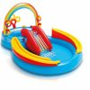 Bazen zabavni Mala sirena 160L 221x193x117cm Neka letnja zabava počne sa Disnei® Little Mermaid Vater Plai Center! Jednostavno naduvajte centar za igranje vode, napunite bazen vodom, povežite baštensko crevo (nije uključeno) na luk da biste aktivirali integrisane prskalice za vodu. Luk ima ugrađen klizač za dodatnu sigurnost i gledajte kako vaša deca bacaju 3 prstena u obliku zvezde na korale. Igra bacanja loptice sa 6 uključenih lopti takođe će pružiti beskrajnu zabavu. Kada deca završe sa prskanjem i igrom, jednostavno ispustite vodu pomoću praktičnog odvodnog ventila. Centar za igru na vodi može da radi sa ili bez vode i nudi zabavu i uzbuđenje tokom cele godine!