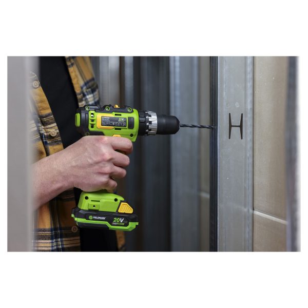Bušilica se isporučuje u praktičnom plastičnom koferu sa brzim punjačem i baterijom od 2 Ah, koji su kompatibilni sa svim FIELDMANN proizvodima serije FAST POWER 20V.