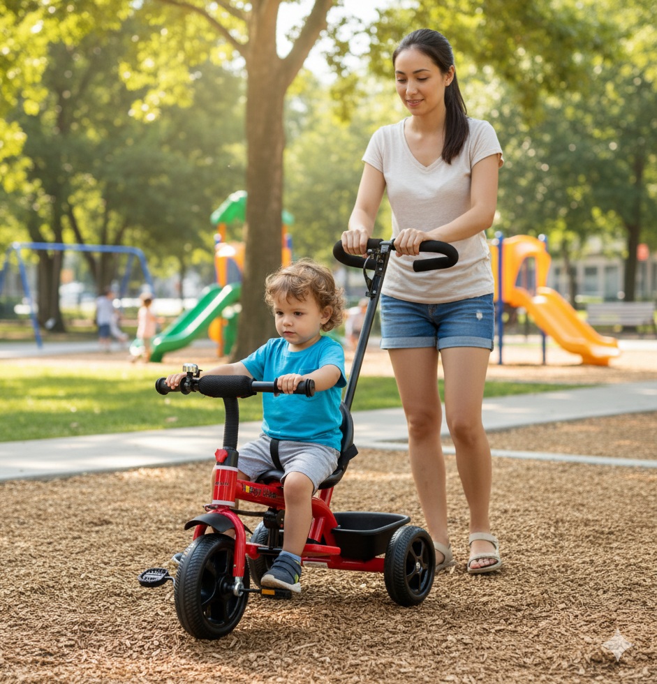 Tricikl se koristi u početku kao guralica uz pomoć roditeljske ručke, a kasnije kao samostalno prevozno sredstvo. Idealan za svakodnevne šetnje i razvoj motorike kod dece. Udobna korpa omogućava da dete ponese svoje omiljene igračke ili flašicu.