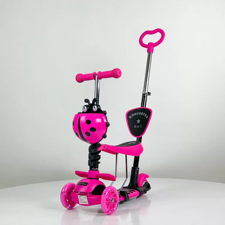 Ciklama Bubamara trotinet 5u1 očarava dizajnom i funkcionalnošću! Sedište i ručke se podešavaju po visini, točkovi svetle, a stabilna konstrukcija podržava aktivnu igru uz maksimalnu sigurnost. Trotinet koji raste sa vašim detetom!