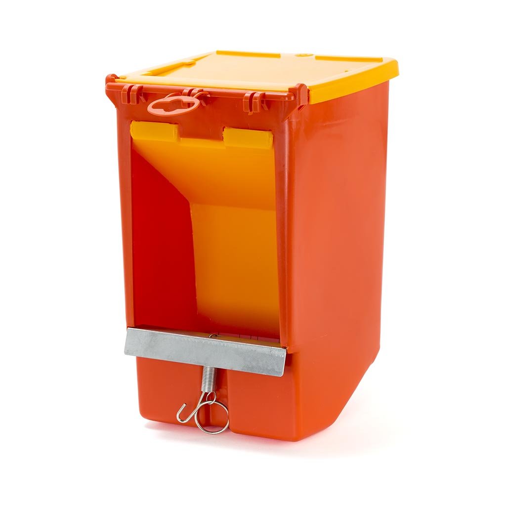 Pvc hranilica za zečeve sa poklopcem. Montira se na kavez sa spoljne strane. Lako se puni i održava.