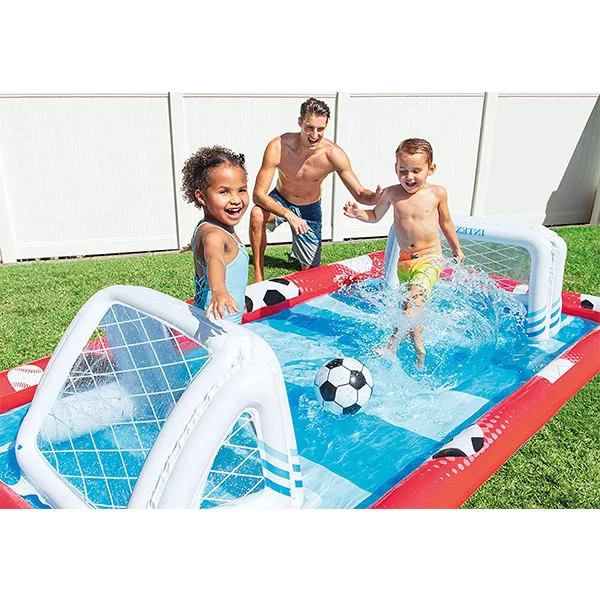 Igralište na naduvavanje Sportski centar Intex pretvara dvorište u pravi letnji raj za decu! Ovaj višenamenski sportski centar kombinuje vodenu zabavu i fizičku aktivnost, omogućavajući mališanima da se igraju fudbala, odbojke i bejzbola – sve na jednom mestu.
