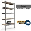 Polica ima 5 nivoa, a svaki nosi 100kg. Ukupna nosivost je 500kg. Metalni deo police čine stubici u L profilu 30x30mm sa duzinskom perforacijom. Perforacija omogucava proizvoljno podesavanje raspona izmedju nivoa police.