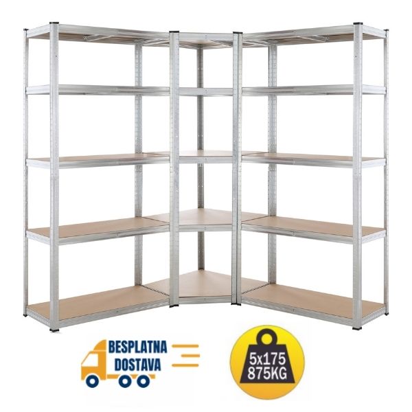 Komplet ugaona polica 180x90x90x40cm + 2 police 180x100x40cm, 5x175kg.