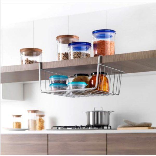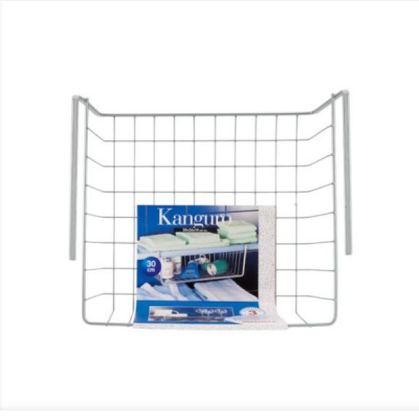 Korpa za odlaganje ispod police Kanguro30 30x26x14cm Metaltex 364830 000 pametno koristi prostor između polica za stvaranje dodatnog prostora za odlaganje sitnica. Idealno je rešenje za uređenje kuhinje, kupatila, radionice ili druge prostorije. Može se koristiti za odlaganje začina, rezervnih krpa, čuvanje kozmetike u kupatilu i slično. Kvalitetne je izrade, od metala koji je presvučen zaštitnim slojem protiv korozije, pa je dugotrajna. Otporna je na ogrebotine i lagana za održavanje. Jednostavno se postavlja na željeno mesto, pomoću nosača, pa se lako može i premestiti sa jednog mesta na drugo. Dimenzije korpe iznose 30x26x14cm
