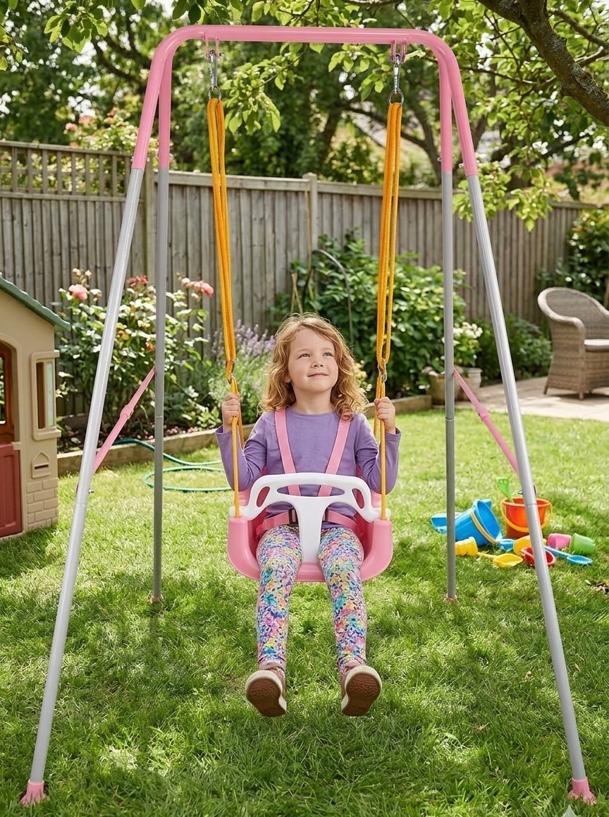 Dečija ljuljaška sa stabilnim metalnim postoljem i sigurnosnim sedištem namenjena je bezbednoj i udobnoj igri najmlađih. Zahvaljujući čvrstoj konstrukciji i dodatnim zaštitnim elementima, idealna je za dvorište, terasu i igrališta.