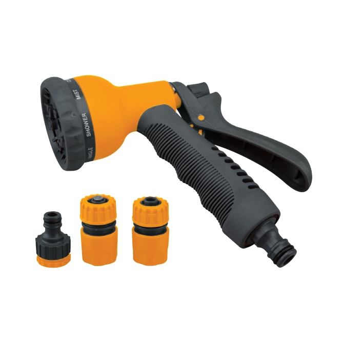<p>Mlaznica se montira na crevo za polivanje pomoću brze spojke i služi za polivanje bašte, travnjaka i biljaka u saksijama.<br /> Po potrebi, mlaznica se podešava od jakog malaza do fine magle. </p> <p>Dužina: 18cm. </p> <p class="product-declaration">Deklaracija: Šifra i naziv proizvoda: 2248 Mlaznica pištolj sa 8 pozicija u setu 4/1 Hoteche Uvoznik: Microcer d.o.o. Poreklo: Kina Jedinica mere: kom </p>