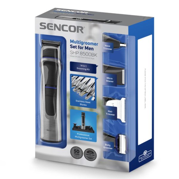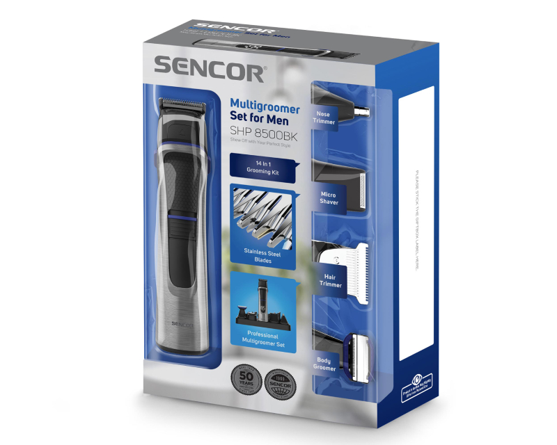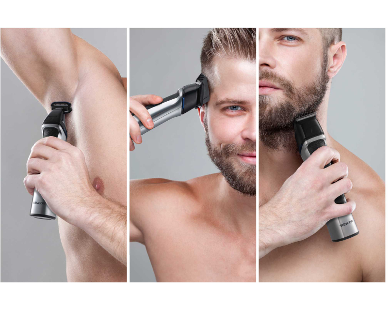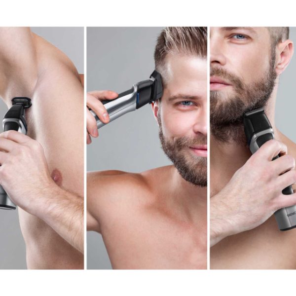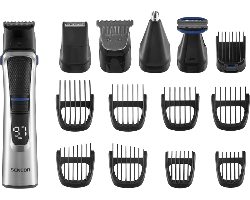14 zamenljivih dodataka – trimer za dlake, trimer za telo, trimer za nos, mikrobrijač, češljevi, šišalice za uši