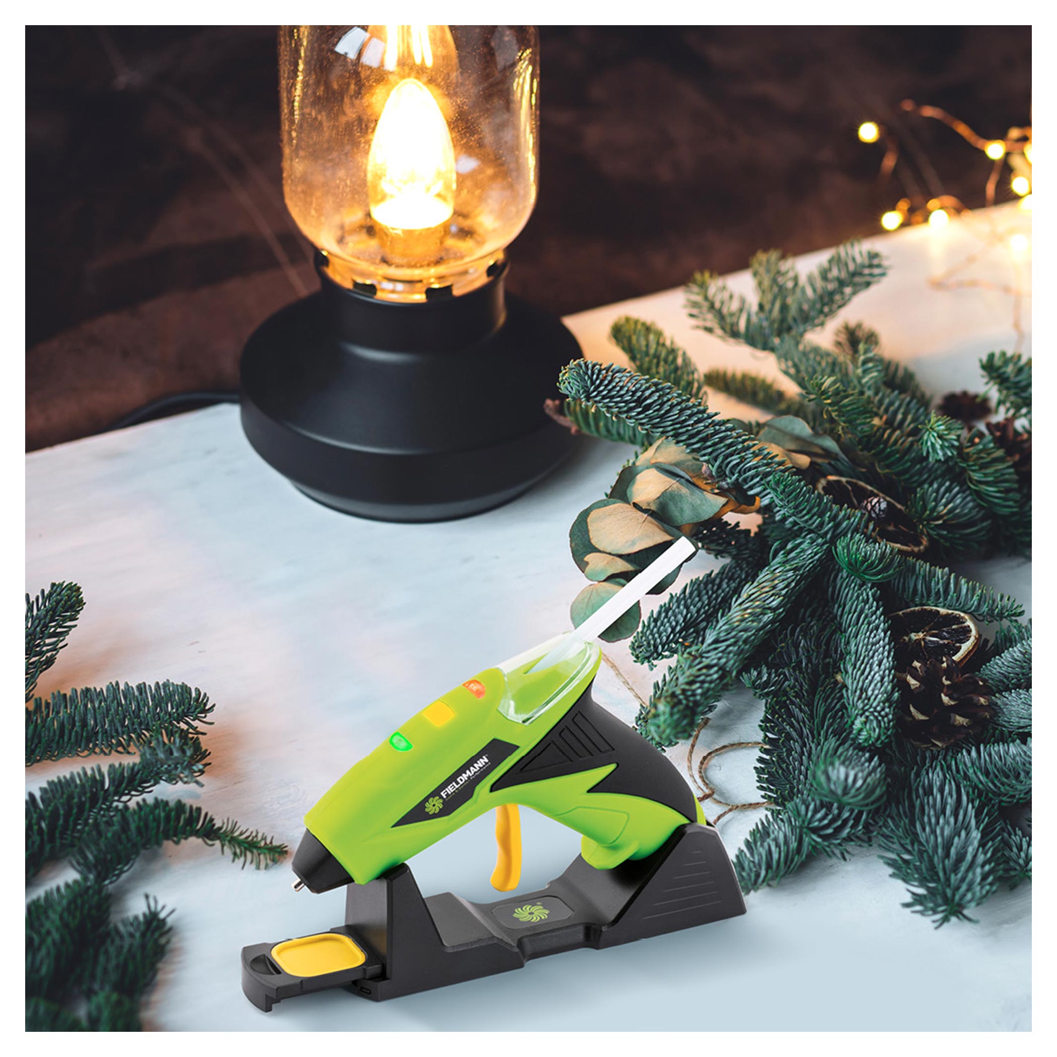 Pistolj za vruci lepak FDTP2204-A Fieldmann za topljenje i nanošenje vrućeg lepka sa akumulatorom marke FIELDMANN dizajniran je za topljenje i nanošenje vrućeg lepka za lepljenje plastike, drveta, plute, tekstila, kartona i keramike.
