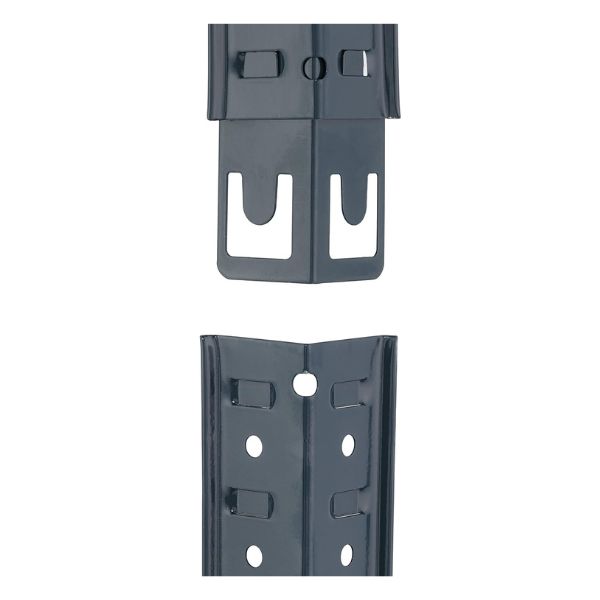 Metalni deo police čine stubici u L profilu 30x30mm sa duzinskom perforacijom. Perforacija omogucava proizvoljno podesavanje raspona izmedju nivoa police.