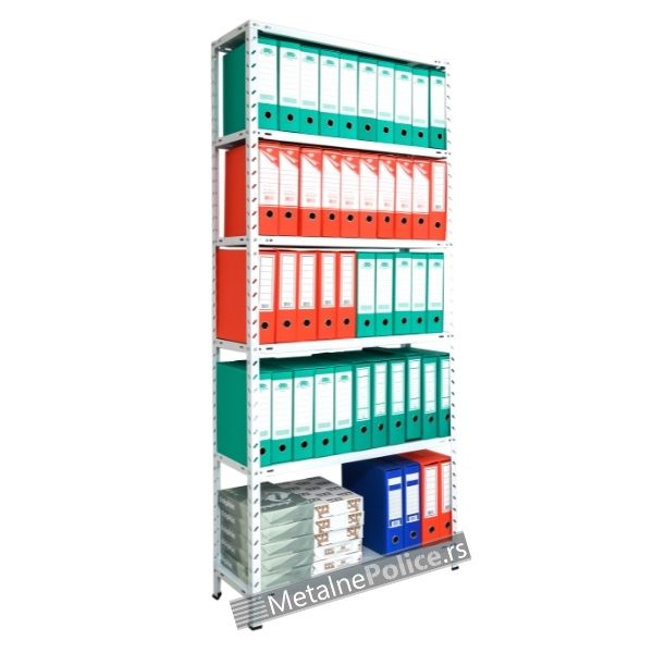 Polica metal-metal 200x90x30cm, 6x85kg bela