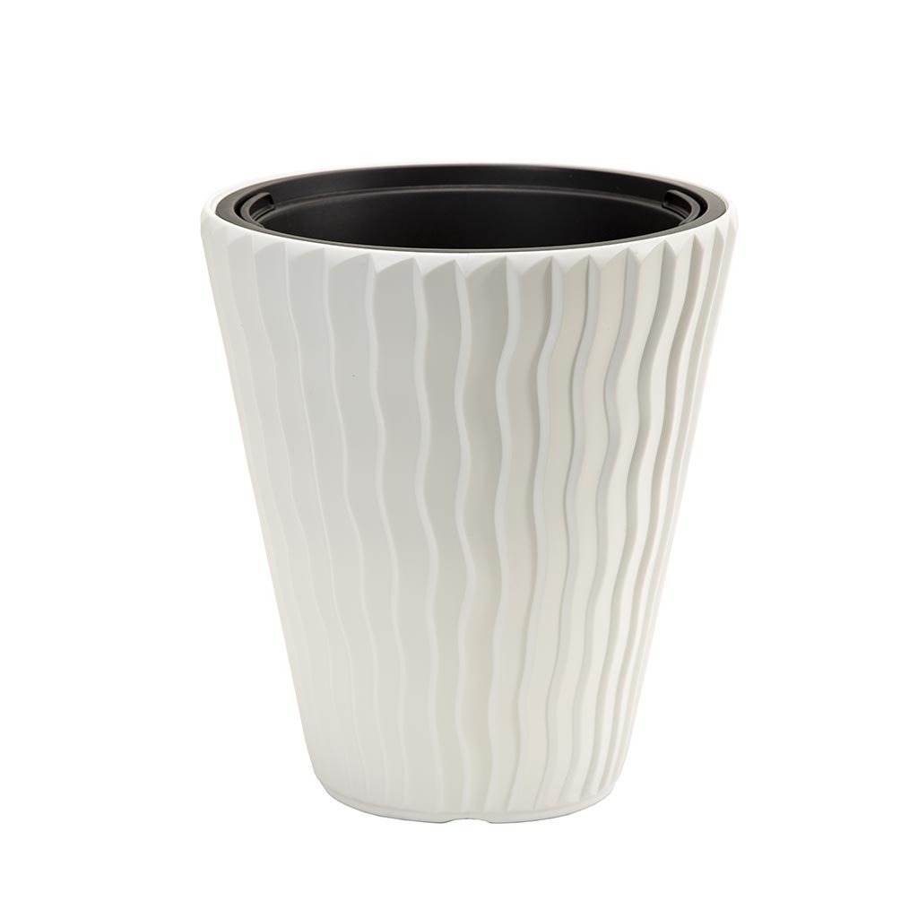 <p>Dekorativna saksija sa talasastim dezenom, koji možete koristiti za ulepšavanje vašeg stambenog i poslovnog prostora.</p> <p>Izradjena je od kvalitetne plastike, pogodna je sadnju biljaka, a možete u nju staviti i biljku zajedno sa saksijom.</p> <p>Za vreme letnjih vrućina i godišnjih odmora preporučujemo rezervoare sa vodomerom za saksije i žardinjere koji obezbeđuju višednevno snabdevanje vaših biljaka sa vodom. Rezervoari po narudžbi se isporučuju posebno za pojedine tipove saksija i žardinjera. – vidi tabelu u nastavku.</p> <p>Dostupne dimenzije:</p> <ul> <li>Prečnik: 30cm, Visina: 50cm, Zapremnina: 22l, Zapremnina uloška: 8l, Rezervoar i vodomer za saksije – IZWKO280, šifra artikla 19384;</li> <li>Prečnik: 35cm, Visina: 60cm, Zapremnina: 37l, Zapremnina uloška: 11l, Rezervoar i vodomer za saksije – IZWKO325, šifra artikla 19385;<br> </li> <li>Prečnik: 40cm, Visina: 70cm, Zapremnina: 53l, Zapremnina uloška: 18l;</li> <li>Prečnik: 30cm, Visina: 33cm, Zapremnina: 13l, Zapremnina uloška: 8l, Rezervoar i vodomer za saksije – IZWKO280, šifra artikla 19384;<br> </li> <li>Prečnik: 35cm, Visina: 38cm, Zapremnina: 21l, Zapremnina uloška: 11l, Rezervoar i vodomer za saksije – IZWKO325, šifra artikla 19385.<br> </li> </ul>