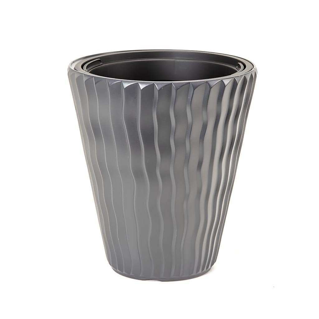 <p>Dekorativna saksija sa talasastim dezenom, koji možete koristiti za ulepšavanje vašeg stambenog i poslovnog prostora.</p> <p>Izradjena je od kvalitetne plastike, pogodna je sadnju biljaka, a možete u nju staviti i biljku zajedno sa saksijom.</p> <p>Za vreme letnjih vrućina i godišnjih odmora preporučujemo rezervoare sa vodomerom za saksije i žardinjere koji obezbeđuju višednevno snabdevanje vaših biljaka sa vodom. Rezervoari po narudžbi se isporučuju posebno za pojedine tipove saksija i žardinjera. – vidi tabelu u nastavku.</p> <p>Dostupne dimenzije:</p> <ul> <li>Prečnik: 30cm, Visina: 50cm, Zapremnina: 22l, Zapremnina uloška: 8l, Rezervoar i vodomer za saksije – IZWKO280, šifra artikla 19384;</li> <li>Prečnik: 35cm, Visina: 60cm, Zapremnina: 37l, Zapremnina uloška: 11l, Rezervoar i vodomer za saksije – IZWKO325, šifra artikla 19385;<br> </li> <li>Prečnik: 40cm, Visina: 70cm, Zapremnina: 53l, Zapremnina uloška: 18l;</li> <li>Prečnik: 30cm, Visina: 33cm, Zapremnina: 13l, Zapremnina uloška: 8l, Rezervoar i vodomer za saksije – IZWKO280, šifra artikla 19384;<br> </li> <li>Prečnik: 35cm, Visina: 38cm, Zapremnina: 21l, Zapremnina uloška: 11l, Rezervoar i vodomer za saksije – IZWKO325, šifra artikla 19385.<br> </li> </ul>