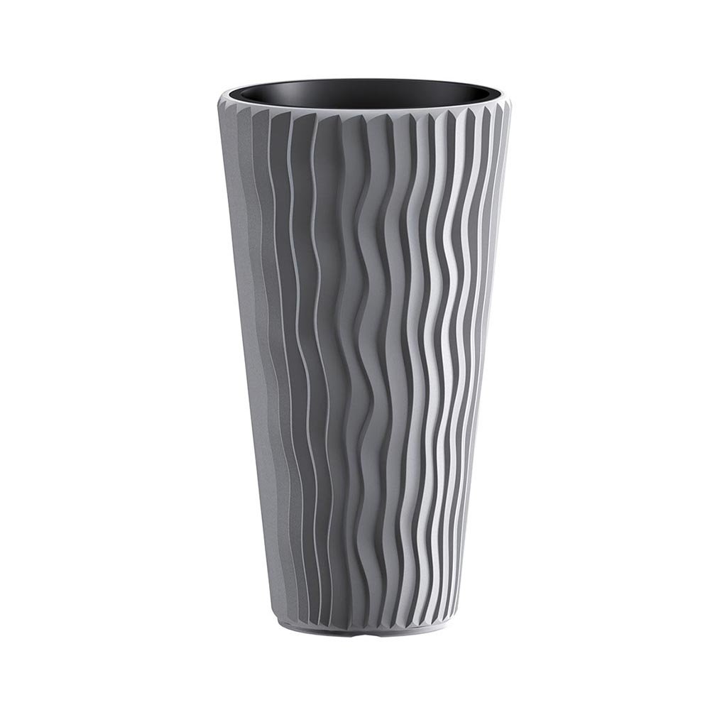 <p>Dekorativna saksija sa talasastim dezenom, koji možete koristiti za ulepšavanje vašeg stambenog i poslovnog prostora.</p> <p>Izradjena je od kvalitetne plastike, pogodna je sadnju biljaka, a možete u nju staviti i biljku zajedno sa saksijom.</p> <p>Za vreme letnjih vrućina i godišnjih odmora preporučujemo rezervoare sa vodomerom za saksije i žardinjere koji obezbeđuju višednevno snabdevanje vaših biljaka sa vodom. Rezervoari po narudžbi se isporučuju posebno za pojedine tipove saksija i žardinjera. – vidi tabelu u nastavku.</p> <p>Dostupne dimenzije:</p> <ul> <li>Prečnik: 30cm, Visina: 50cm, Zapremnina: 22l, Zapremnina uloška: 8l, Rezervoar i vodomer za saksije – IZWKO280, šifra artikla 19384;</li> <li>Prečnik: 35cm, Visina: 60cm, Zapremnina: 37l, Zapremnina uloška: 11l, Rezervoar i vodomer za saksije – IZWKO325, šifra artikla 19385;<br> </li> <li>Prečnik: 40cm, Visina: 70cm, Zapremnina: 53l, Zapremnina uloška: 18l;</li> <li>Prečnik: 30cm, Visina: 33cm, Zapremnina: 13l, Zapremnina uloška: 8l, Rezervoar i vodomer za saksije – IZWKO280, šifra artikla 19384;<br> </li> <li>Prečnik: 35cm, Visina: 38cm, Zapremnina: 21l, Zapremnina uloška: 11l, Rezervoar i vodomer za saksije – IZWKO325, šifra artikla 19385.<br> </li> </ul>