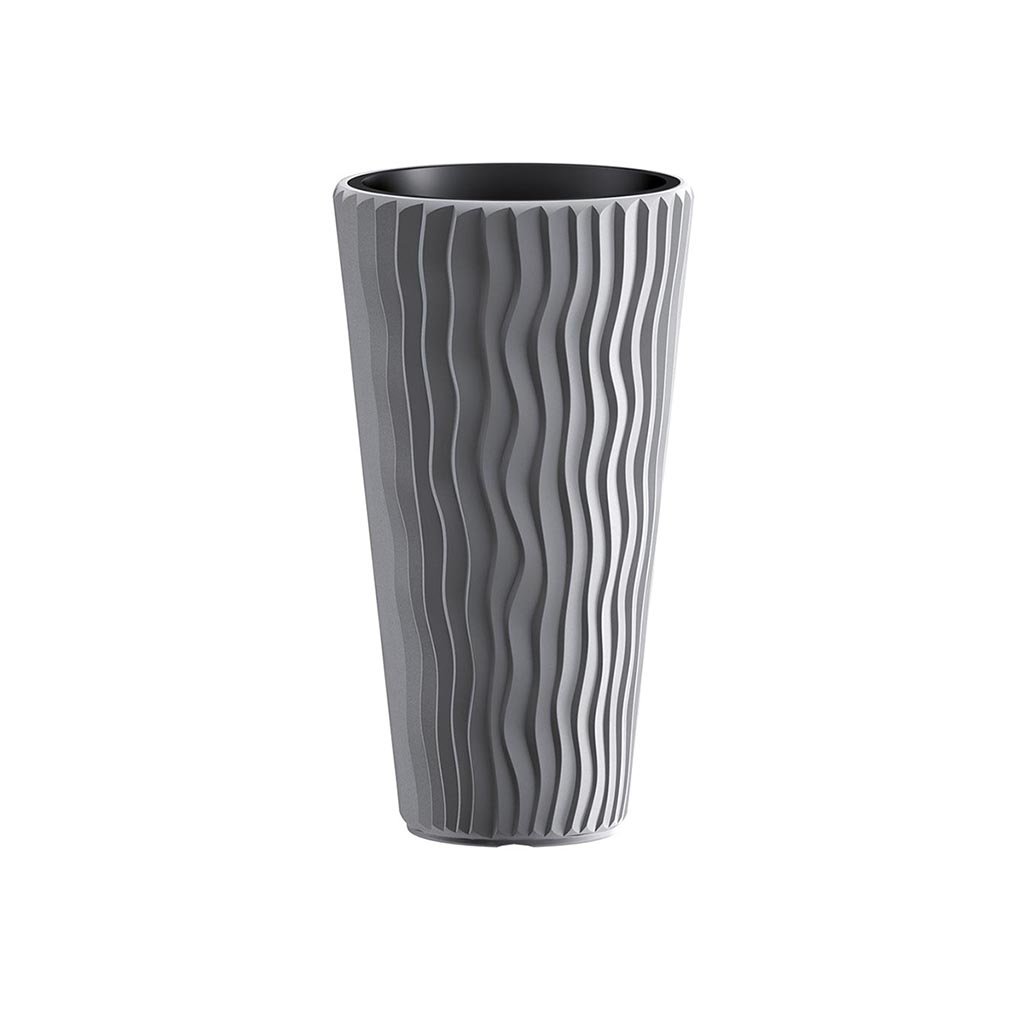 <p>Dekorativna saksija sa talasastim dezenom, koji možete koristiti za ulepšavanje vašeg stambenog i poslovnog prostora.</p> <p>Izradjena je od kvalitetne plastike, pogodna je sadnju biljaka, a možete u nju staviti i biljku zajedno sa saksijom.</p> <p>Za vreme letnjih vrućina i godišnjih odmora preporučujemo rezervoare sa vodomerom za saksije i žardinjere koji obezbeđuju višednevno snabdevanje vaših biljaka sa vodom. Rezervoari po narudžbi se isporučuju posebno za pojedine tipove saksija i žardinjera. – vidi tabelu u nastavku.</p> <p>Dostupne dimenzije:</p> <ul> <li>Prečnik: 30cm, Visina: 50cm, Zapremnina: 22l, Zapremnina uloška: 8l, Rezervoar i vodomer za saksije – IZWKO280, šifra artikla 19384;</li> <li>Prečnik: 35cm, Visina: 60cm, Zapremnina: 37l, Zapremnina uloška: 11l, Rezervoar i vodomer za saksije – IZWKO325, šifra artikla 19385;<br> </li> <li>Prečnik: 40cm, Visina: 70cm, Zapremnina: 53l, Zapremnina uloška: 18l;</li> <li>Prečnik: 30cm, Visina: 33cm, Zapremnina: 13l, Zapremnina uloška: 8l, Rezervoar i vodomer za saksije – IZWKO280, šifra artikla 19384;<br> </li> <li>Prečnik: 35cm, Visina: 38cm, Zapremnina: 21l, Zapremnina uloška: 11l, Rezervoar i vodomer za saksije – IZWKO325, šifra artikla 19385.<br> </li> </ul>