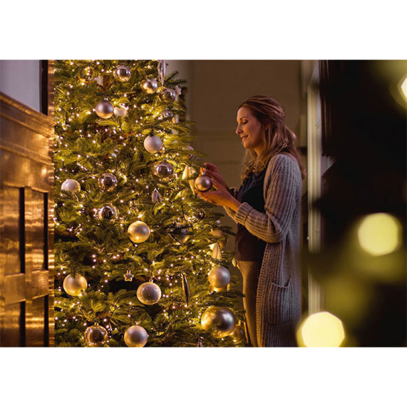 Stvorite čarobnu prazničnu atmosferu uz spoljašnje LED novogodišnje lampice Lumineo Compact! Ovaj izvanredni niz od 34 metra sa 1500 toplih belih sijalica donosi efekt svetlucanja koji će očarati svakog posmatrača. Sa 5 metara dugačkim kablom i ukupnom dužinom od 39 metara, savršene su za ukrašavanje jelki visine od 300 do 450 cm. Kontrolna kutija omogućava vam izbor između 8 različitih režima rada, dok tajmer automatski podešava rad lampica na 8 sati uključenih i 16 sati isključenih. Zeleni kabl i IP44 stepen zaštite garantuju da su ove lampice idealne za unutrašnju i spoljašnju upotrebu. Sa težinom od 1,38 kg, lako ih je postaviti i prilagoditi vašem prostoru. Uživajte u blistavoj prazničnoj atmosferi!