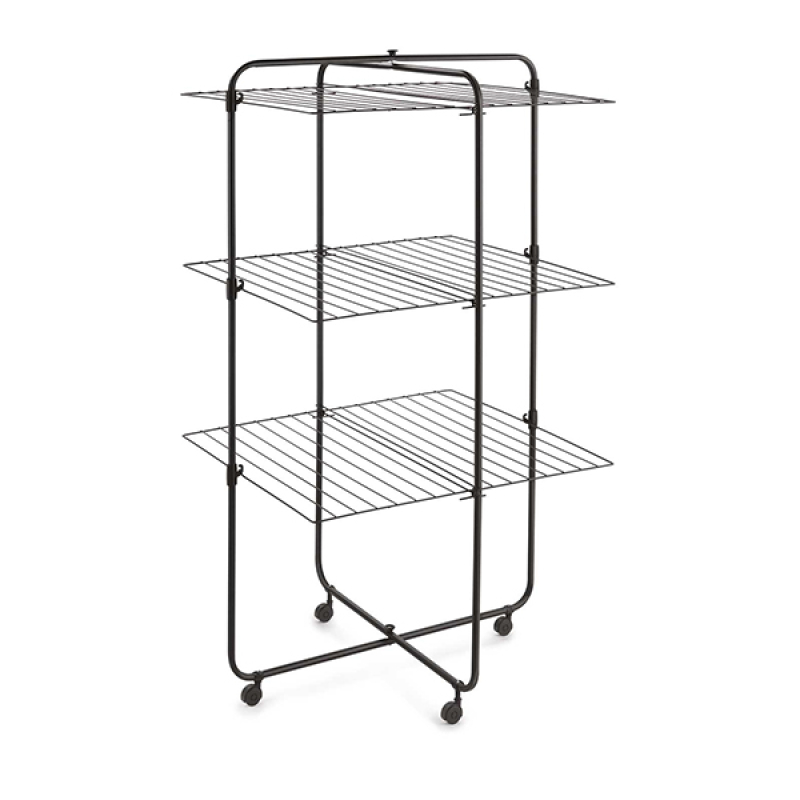 Sušilica za veš Dijon Onyx 33m 72x64x123cm Metaltex 407963 000 je sušač na tri nivoa, koja koristi manje prostora na podu, a istovremeno obezbeđuje površinu za veš od odličnih 33 metra dužine. Sušač je izrađen od metala koji je presvučen epoksidnim premazom koji ga štiti od korozije, a ujedno sprečava lepljenje prašine za njegovu površinu. Detalji na sušilici su izrađeni od izdržljive PP plastike. Delovi sušilice se mogu odvojeno otvarati, čime se daje veća fleksibilnost u upotrebi. Otvaranjem određenih delova, dok drugi ostaju sklopljeni, stvara se prostor za duže komade veša. Sušač je opremljen točkićima koji su višesmerno okretni, pa omogućavaju lako pomeranje sušilice, čak i kada je puna veša.
