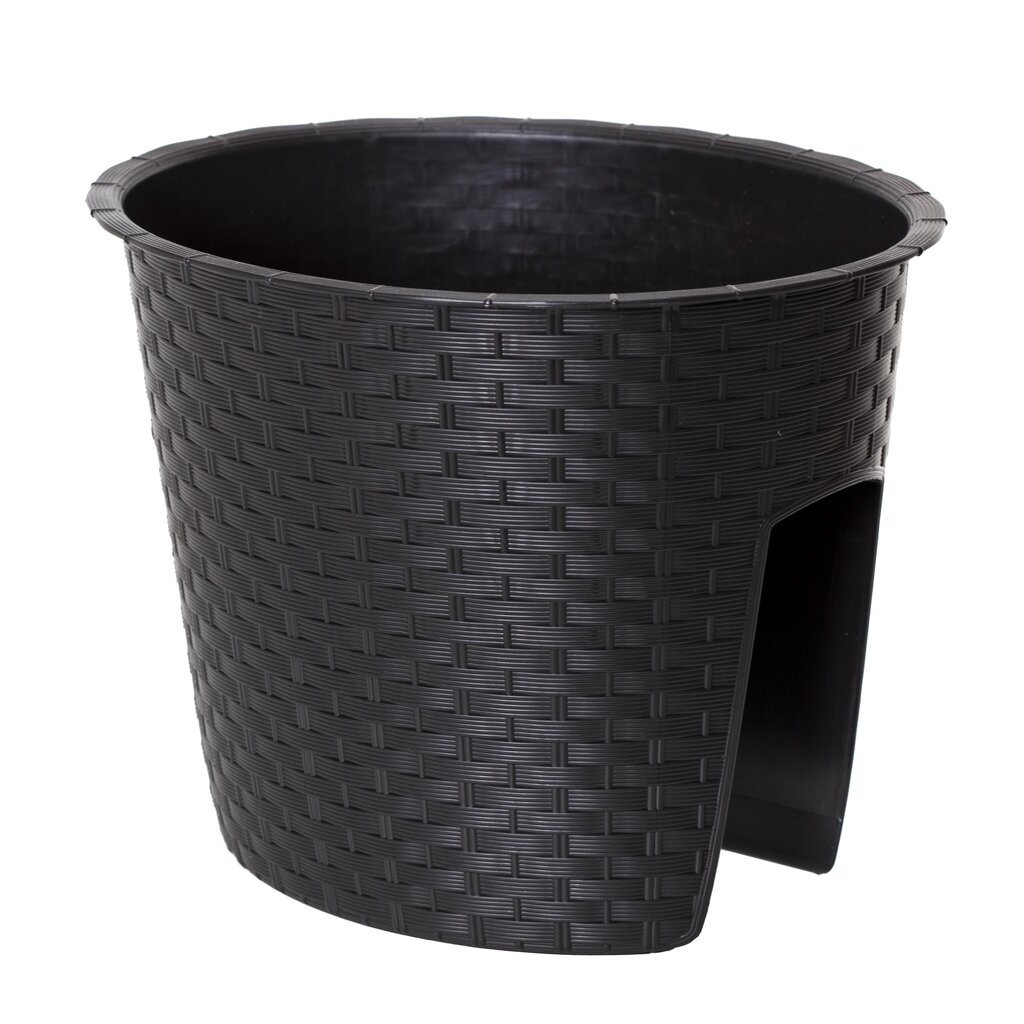 Ova lepa ovalna ratan žardinjera može da bude ukras svakog balkona, terase i ograde. Lako se postavlja i održava. Izrađena je od kvalitetne plastike, zato ima dugi rok upotrebe. Dimenzije: 30 x 24cm, Visina: 22,5 cm Zapremnina: 6l.Deklaracija: Šifra i naziv proizvoda: 5062 Žardinjera Ratan za ogradu Uvoznik: Microcer d.o.o. Poreklo: Evropska Unija Jedinica mere: kom